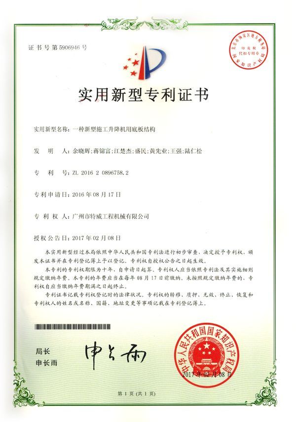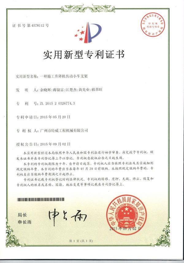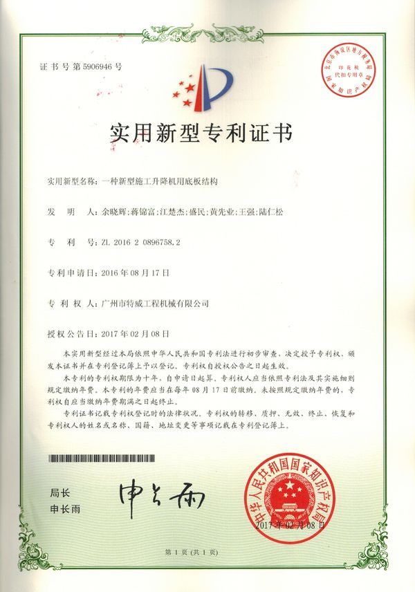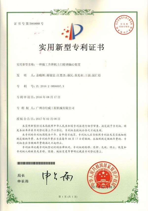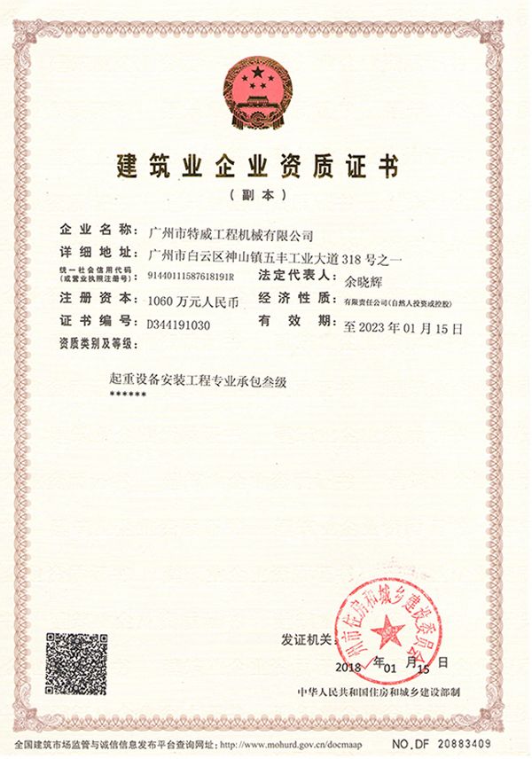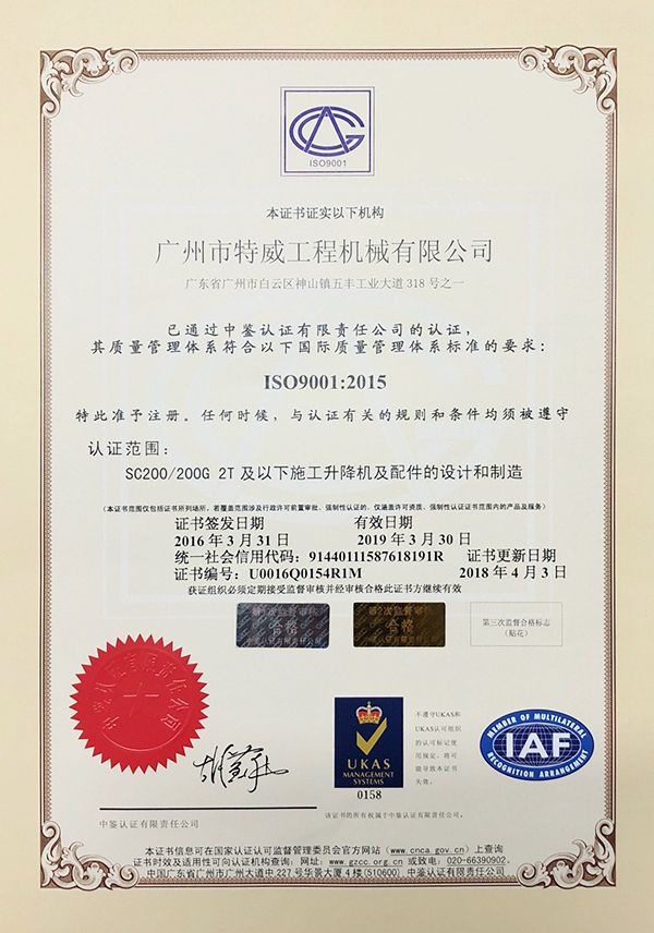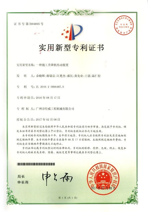 廣州市特威工程機械有限公司地處廣州市白云區(qū)神山鎮(zhèn),廣清高速神山出口附近,是一家施工升降機的專業(yè)生產(chǎn)廠家。公司成立于2011年,占地100000多平方米,注冊資金1060萬元,現(xiàn)有員工300余人其中工程技術(shù)人員33人,高級技術(shù)人員52人。